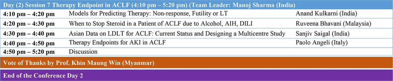 ACLF Consensus Meeting: Therapeutic Endpoints in Management of Organ Failure in ACLF